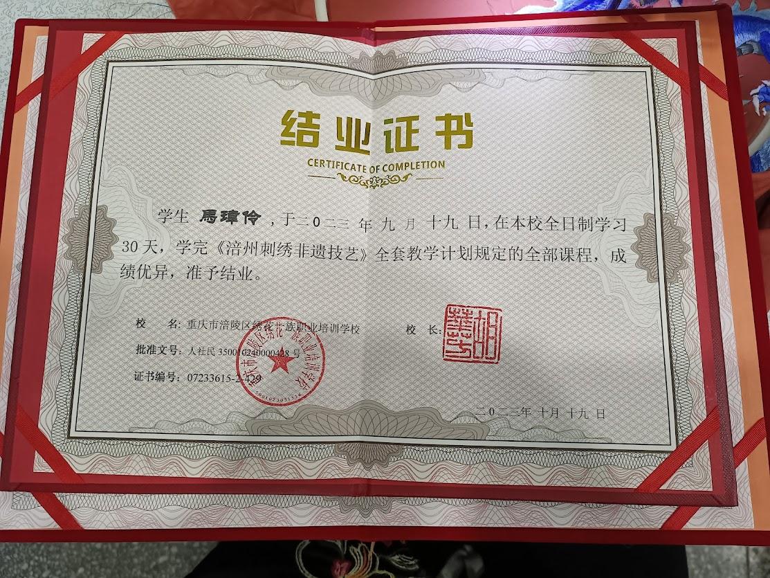 慧蘭前往四川重慶 繡花一族 繡花學校進修非遺證照