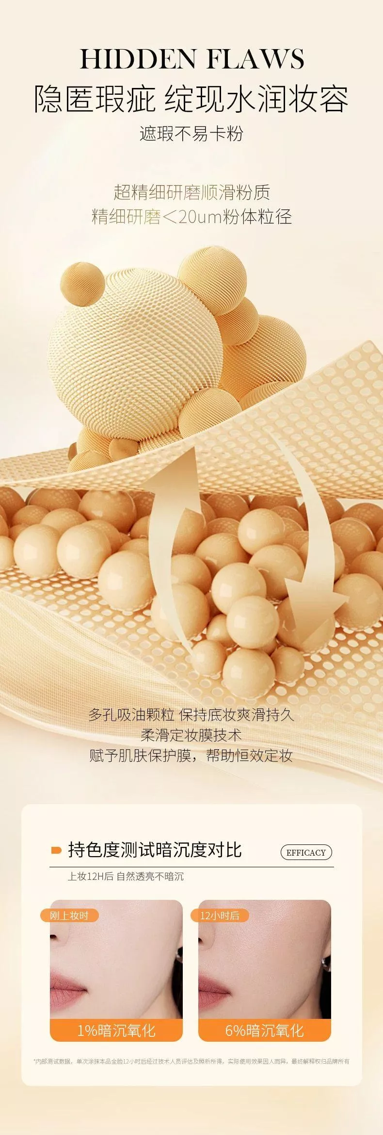 隱匿毛孔瑕疵,高度遮瑕,呈現精修般無瑕膚質