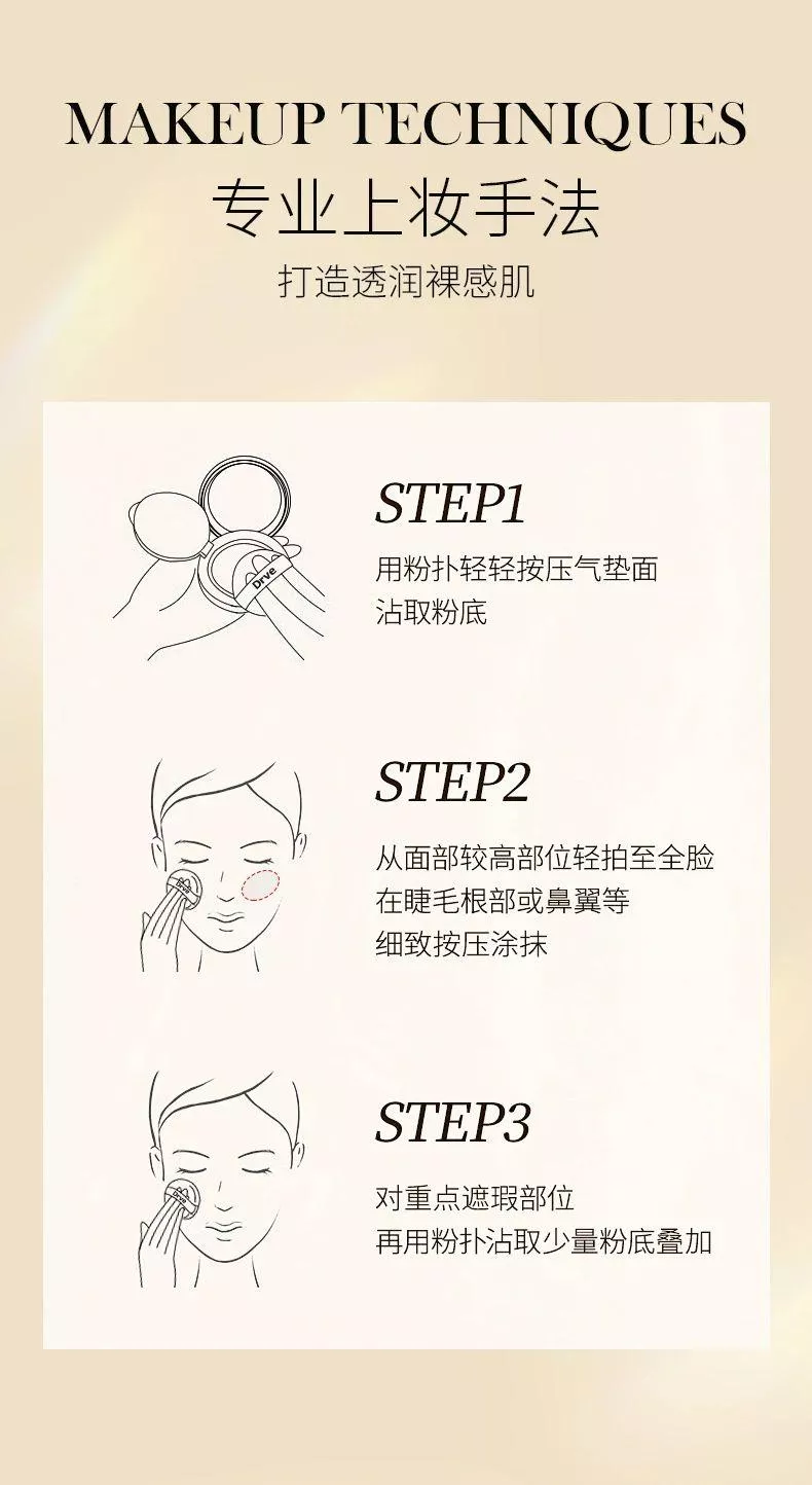顛覆傳統氣墊,將防曬+美白+遮瑕融入進去,妝養合一