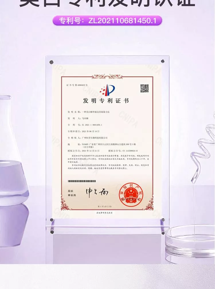 1、擁有美白祛斑發明專利.專利號2021106814501。